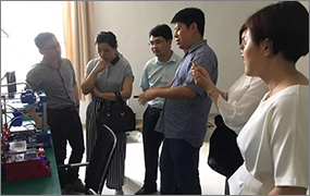 公司领导张伟对各位老师的到来表示热烈欢迎,并对创海科创教育的发展及概况进行介绍。并详细介绍了从课程体系、空间建设、师资培训到活动支持的科创教育整体解决方案,并就创客教育在学校的开展进行交流与探讨。