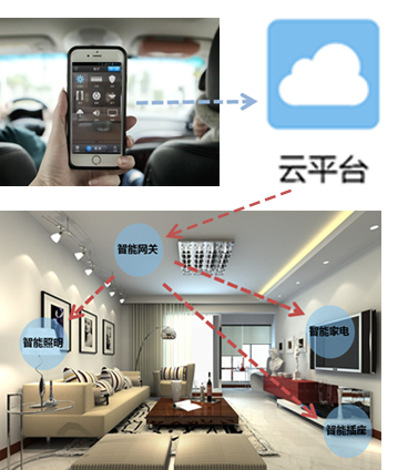业主可通过手机与星悦城智能云平台相连,通过智能网关完成对室内家电的控制
