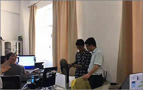 公司领导张伟对各位老师的到来表示热烈欢迎,并对创海科创教育的发展及概况进行介绍。并详细介绍了从课程体系、空间建设、师资培训到活动支持的科创教育整体解决方案,并就创客教育在学校的开展进行交流与探讨。